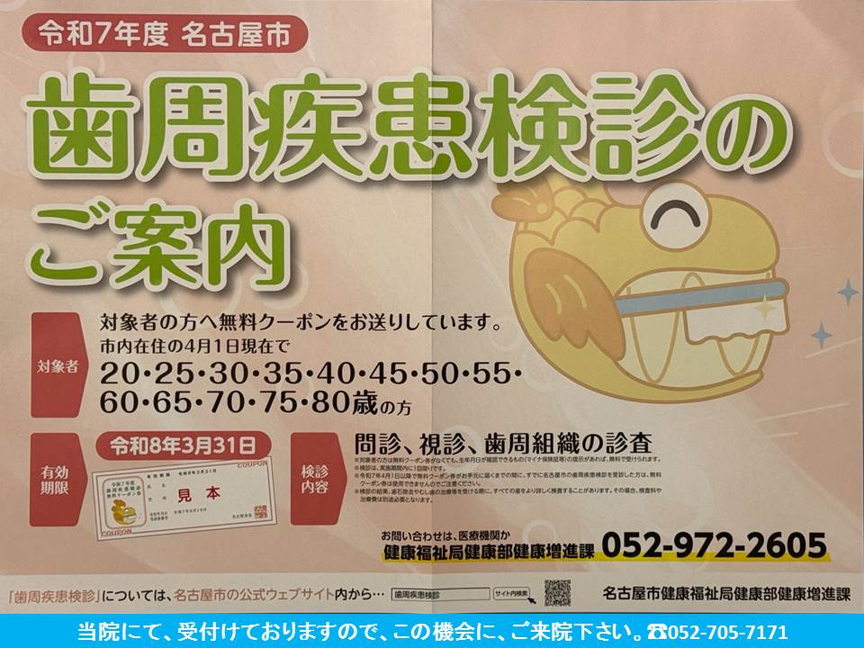 名古屋市が配布している、歯周疾患検診の無料クーポンはご存知ですか?!